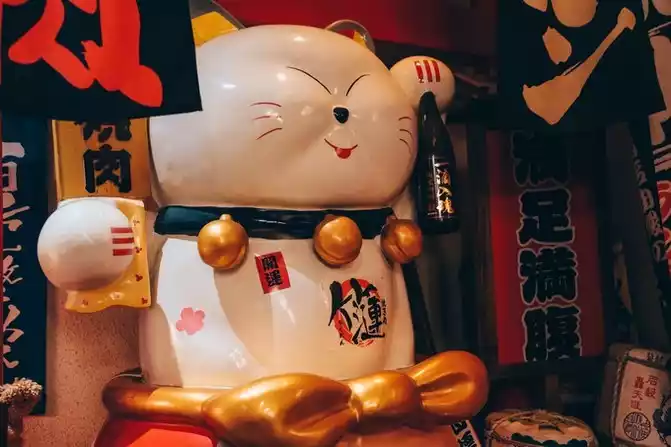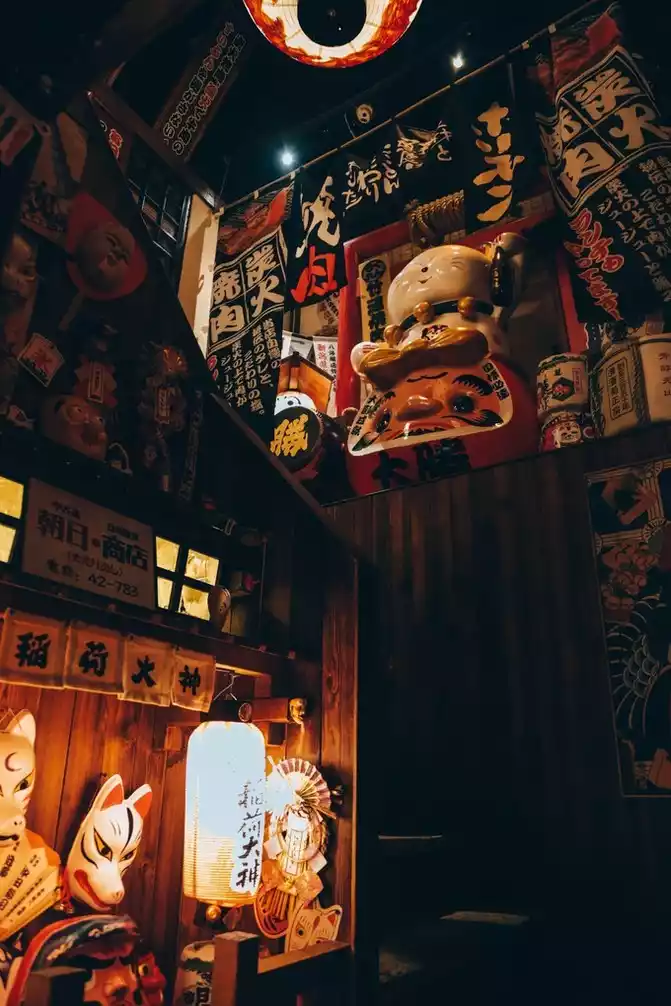 The wooden staircase goes up to the second floor, full of all kinds of half-curtains and lucky cats, and the small Japanese elements are really cute.