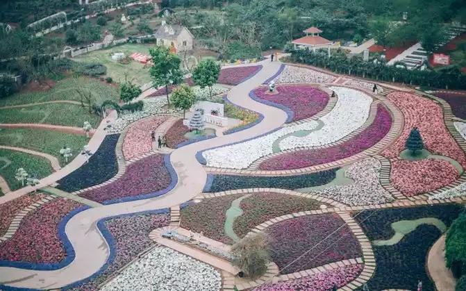 This large area of land is planted with a variety of flowers, with different colors and very beautiful. The road is winding and intestine-shaped, which is why the area is named.