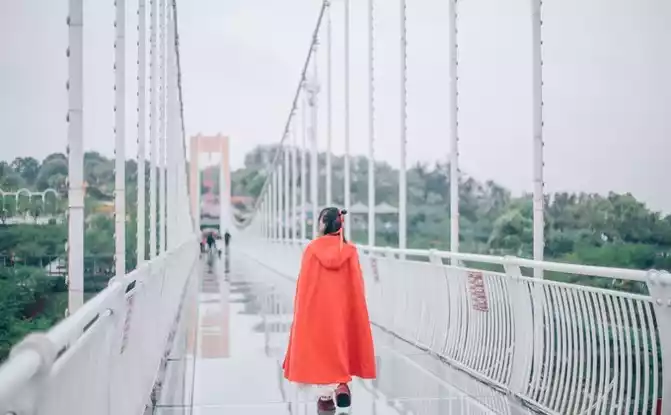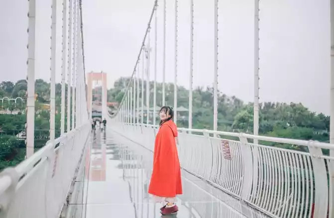 entrance of the glass bridge can be reached directly by elevator, eliminating the hard work of climbing the stairs, and the entrance is full of flowers, like walking through Alice's wonderland.