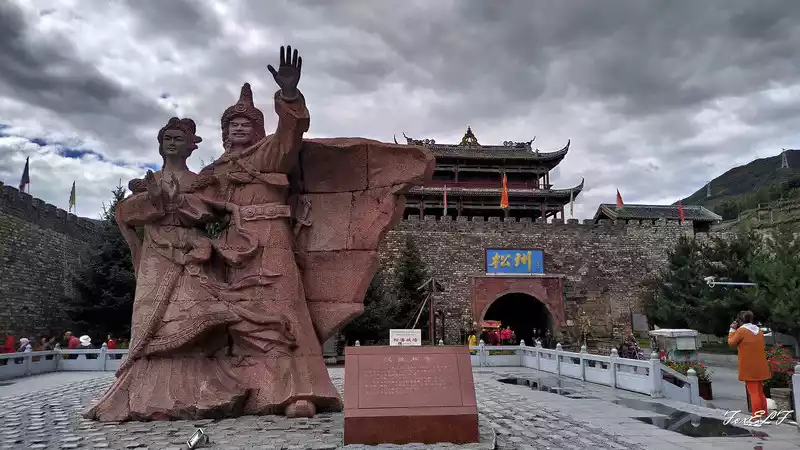 During the Tang Dynasty, the Tibetan leader Songtsen Gampo sent envoys to Chang'an to propose. The envoy passed through Songzhou and was detained by the state officials, Songtsen Gampo was furious, personally led 200,000 troopers to invade, Tang Governor Han Xian was defeated, Tang Taizong ordered the official Shangshu to lead the army to Songzhou, and the Tang army won a great victory after the battle of Chuanzhu Temple. After Songtsen Gampo returned to Tibet, he sent envoys to send gold to seek intermarriage and reconciliation, and Emperor Taizong knew the great righteousness and married Princess Wencheng to Songtsen Gampo, which became a good story through the ages. According to legend, this is the place where Songtsen Gampo welcomed Princess Wencheng.