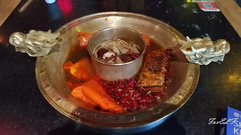 Lunch is settled at Chuanzhu Temple, group meal hot pot, chicken soup pot bottom with various mushrooms and cordyceps flowers, delicious.