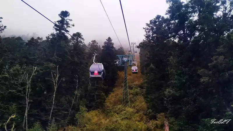 Take the cable car and go up the mountain in 4 minutes. From the cable car station to the scenic spot, you still need to walk a mountain and forest plank road, walk slowly forward, breathe the humid air of the forest, comfortable, for us should be regarded as walking in the fog, there are small water droplets suspended around, and for the people under the mountain, it should be regarded as walking in the clouds.