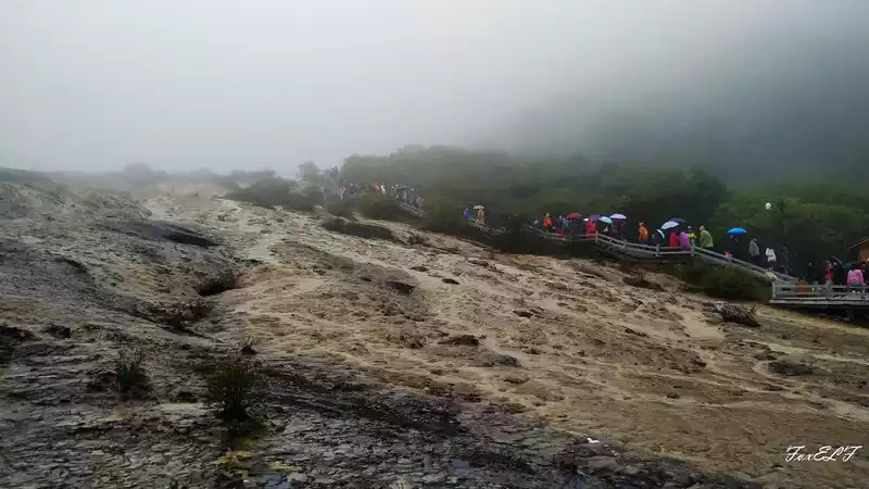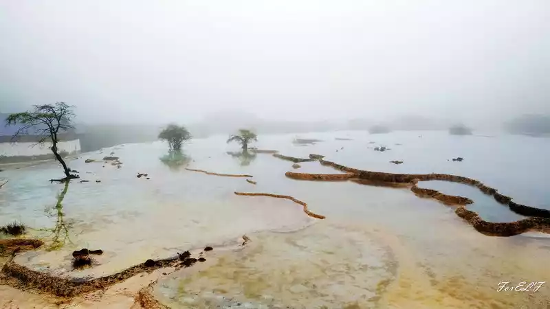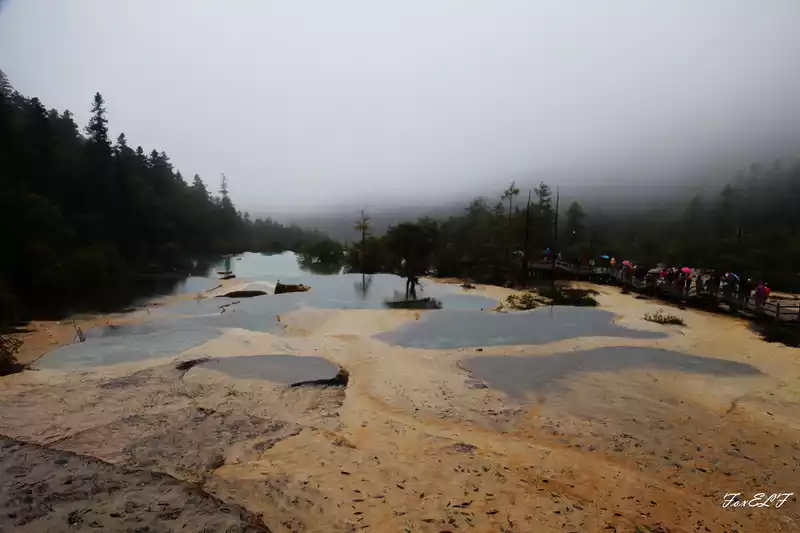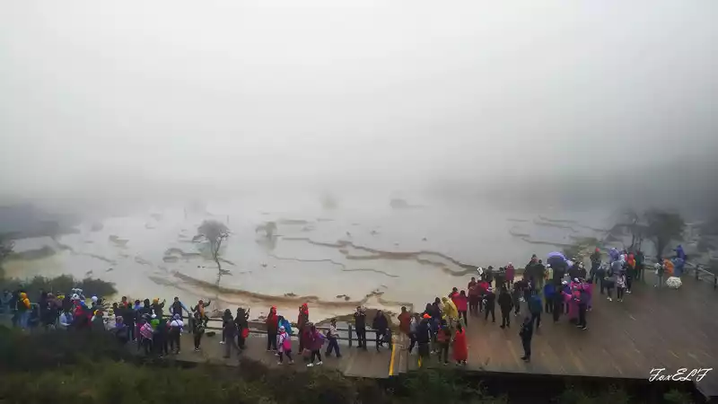 Referring to the travelogue on the Internet, both sides of the colorful pool should be walkable, maybe because of the weather, only one side is open, the two roads here, you can first watch from the near observation deck close to the colorful pool, and then go up the mountain, from the higher observation deck to see the panoramic view of the colorful pool, of course, there is fog and it is white.