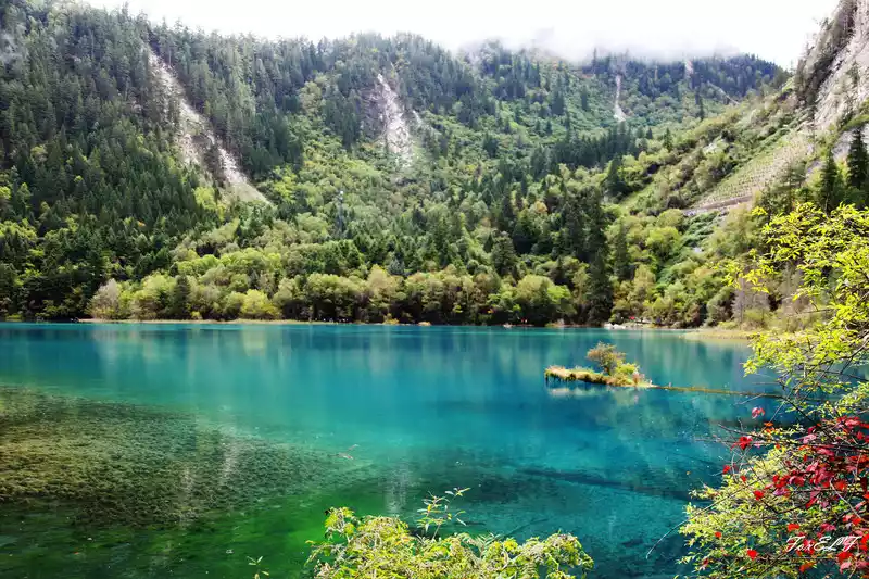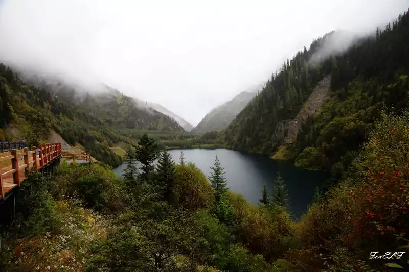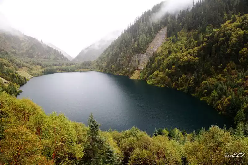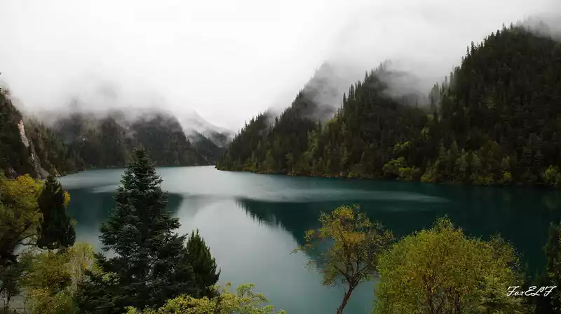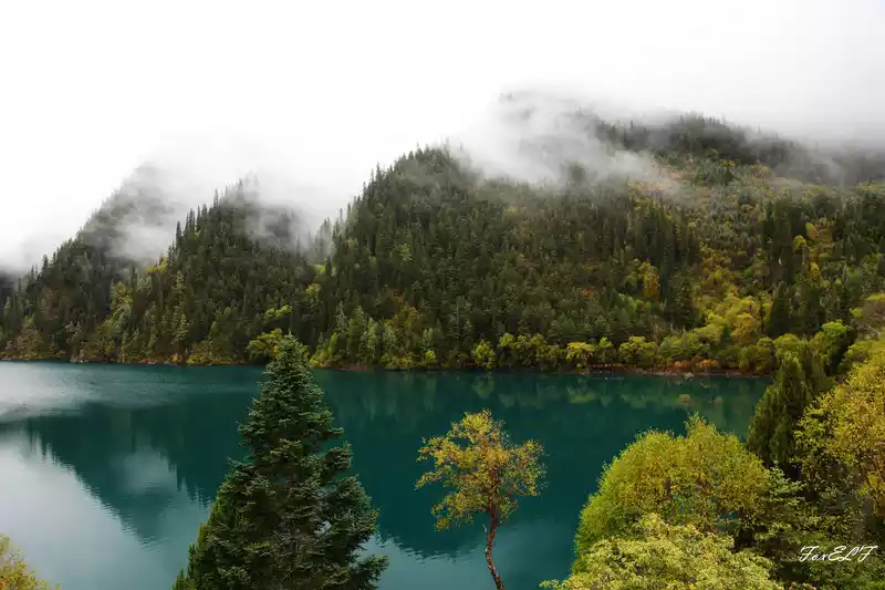 The Rhino Sea is a natural lake about 2.2 kilometers long, 17 meters deep, 2,400 meters above sea level, and can reach more than 40 meters at the deepest point. Rhino Sea is the largest sea in Shuzhenggou, and it is also one of the most varied seas in Jiuzhaigou, and the Rhino Sea is the second largest sea in Jiuzhaigou, and its reflection is almost the crown of the sea. The reflection of the clouds and mist when the fog drifts away every morning is both illusory and real, making it difficult to distinguish where the sky is and where the sea is. The colorful leaves around the lake shore are also bright and colorful, crowning the crowd.