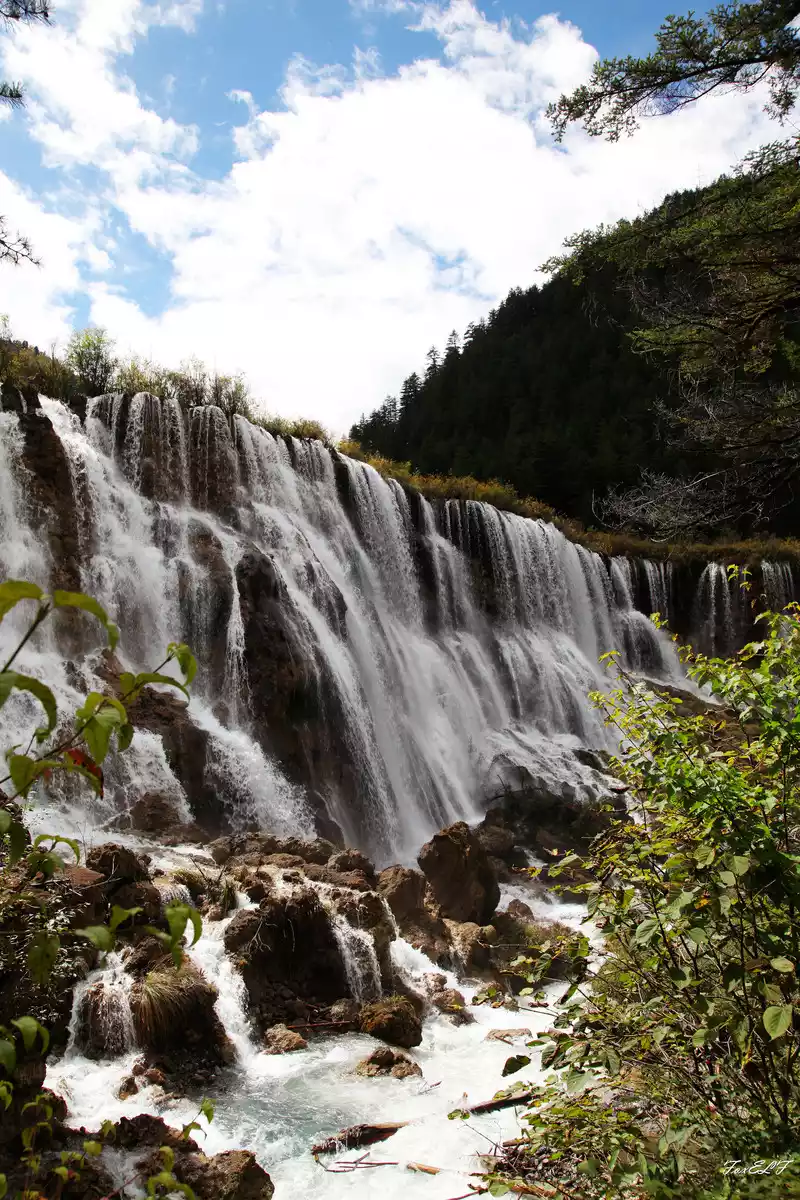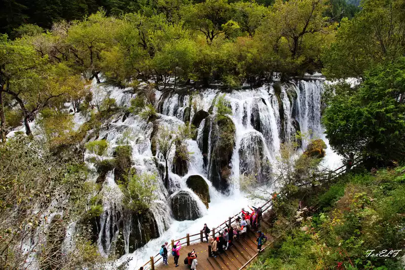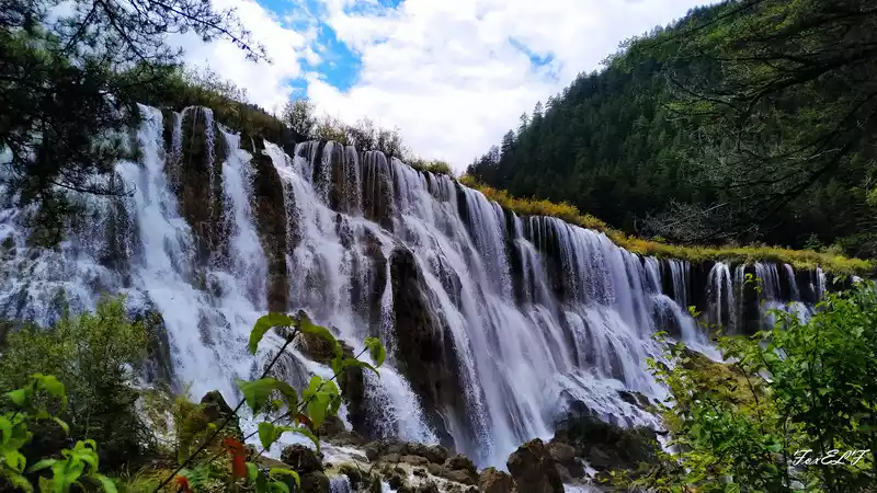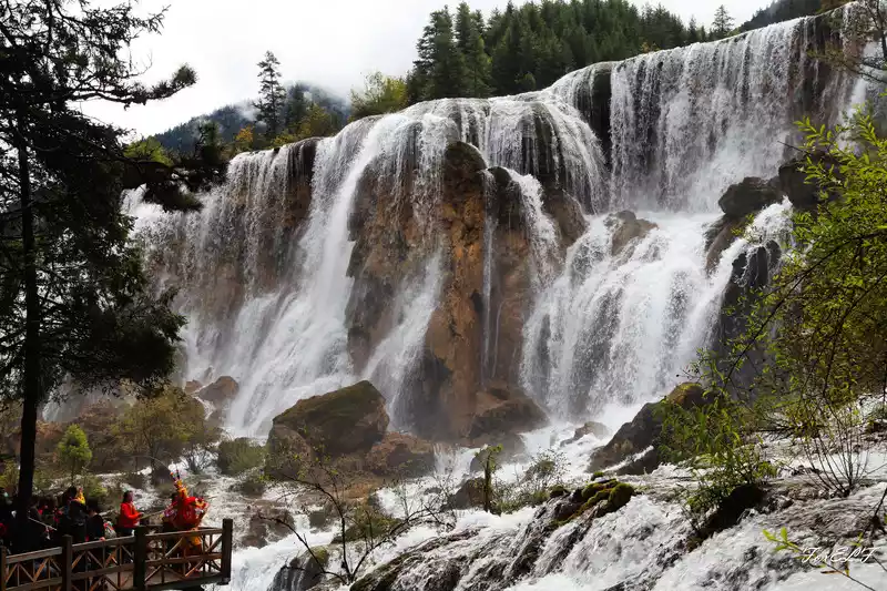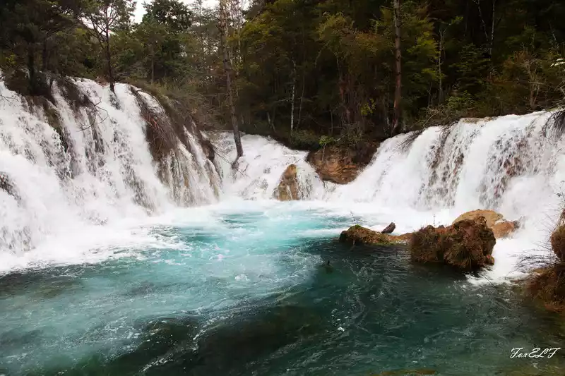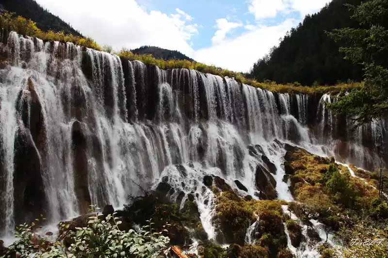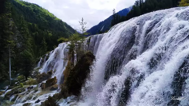 Shuzheng Waterfall is located in Shuzhenggou, Jiuzhaigou Scenic Area, Sichuan, and he is the first waterfall seen in the ditch and the smallest of the four major waterfalls in Jiuzhaigou. Shuzheng Waterfall is composed of many waterfalls connected end to end, and the water is fierce, like thousands of troops waving flags and roaring like thunder. On the embankment stands the unique shrubs of the plateau, rooted in the bottom of the water, standing proudly in the torrent, withstanding the impact of flowing water for many years without falling or rotting, forming a special plant community and a rare natural wonder in the world. Shuzheng Waterfall is next to the road in front of Shuzheng Village, the first waterfall seen in the ditch, and it is also the smallest of the four major waterfalls in Jiuzhaigou. Although it is the smallest, it can also make people who visit Jiuzhaigou for the first time thrilling. Shuzheng Waterfall is 2,295 meters above sea level, 25 meters high, and 72 meters wide.