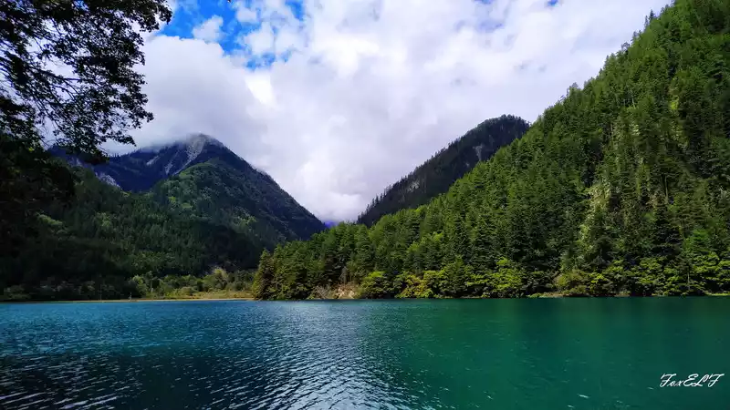 Changhai, at an altitude of 3,060 meters, about five kilometers long, more than 600 meters wide, and covers an area of 930,000 square meters, is located at the end of Zecha Wagou. The peaks next to Changhai are covered with snow all year round, surrounded by forests and emeralds, standing on the Changhai Observation Deck, the blue sky and white clouds, the snow on the peaks are in full view, and it feels that the mountains and the sky are connected to each other, there is no distance, which is also a major landscape of Changhai. Changhai is the highest altitude and the widest lake in Jiuzhaigou, the water surface of the lake is dark blue, the water source comes from the melting snow in the mountains, it is strange that there is no water outlet around Changhai, but the water does not overflow the embankment in the summer and autumn rainy seasons, and the long drought in winter and spring does not dry up, so the locals of Jiuzhaigou call it a treasure gourd that is dissatisfied and leaks dry. The lake is more than 100 meters deep, in an S-row spread, the lake is surrounded by green forests, and the peaks are covered with snow all year round. In the middle of winter, the long sea ice is up to 60 centimeters thick, making it an ideal place for ice sports.