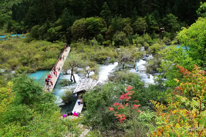 visit route of Zawagou is relatively simple: get off the bus at Changhai and walk along the plank road to Wucaichi, and continue walking to Wucaichi Station to take the Ferris car back to the Nuorilang Dispatch Center. A small note is that you can take some time to walk a little further down from the colorful pond station to the viewing platform of the last seasonal sea. There is a plank road from the sea in the last season to the sea in the next season, but the distance is too far, and it is still sealed, so let's take a car.