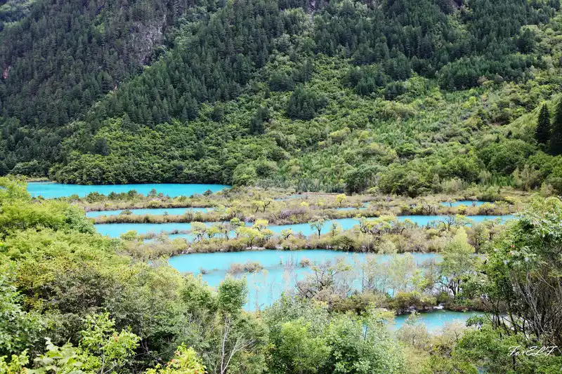 Shuzhenggou attractions: Nuorilang Waterfall, Rhino Sea, Tiger Sea, Shuzheng Waterfall (Shuzheng Village), Shuzheng Qun Sea, Wolong Bay, Shuanglong Sea, Reed Sea, Bonsai Sea.