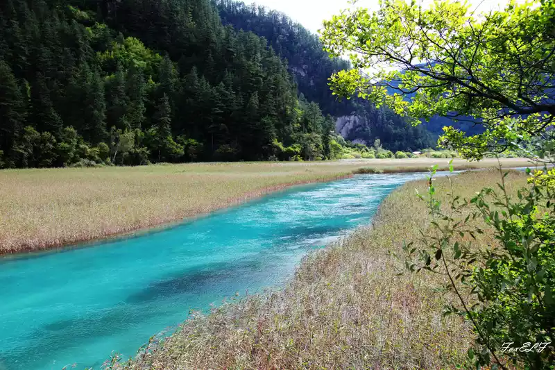 Bonsai Beach. At the end of the sea of reeds, the river gradually widens, and the reeds are gone, replaced by clusters of trees scattered on the shallows, which is the first scenery of Jiuzhaigou - bonsai beach. Bonsai Beach, also known as "Bonsai Sea" and "Jiazhucuo" in Tibetan, is the first beach flow landscape to enter Jiuzhaigou.
