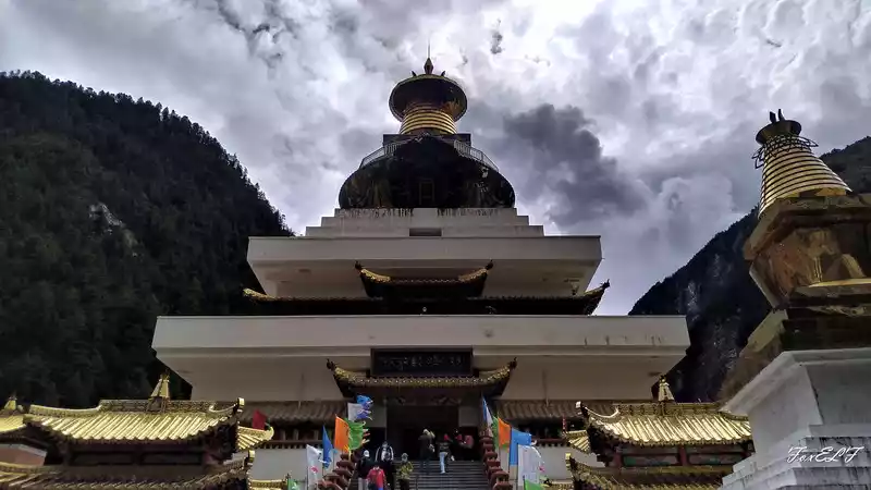The Zaru Temple is backed by a vein of Cangshan, facing the treasure mirror cliff, with a golden top and red eaves, and five-colored prayer flags praying earnestly in the wind. It has both a solemn Zen flavor and the legacy of primitive Benbo religion. The temple covers a total area of more than 100 acres and a construction area of more than 20,000 square meters, of which the landmark building of the temple is the "Yongzhong Laze Pagoda". There are 5 floors, the first floor is the museum, the second floor is the Hall of Manifestation, the third floor is the Hall of Tantra, the fourth floor is the Hall of the Heart Sect, and the fifth floor is the Pagoda of Buddha relics and 108 sets of the Tripitaka "Ganzhuer".