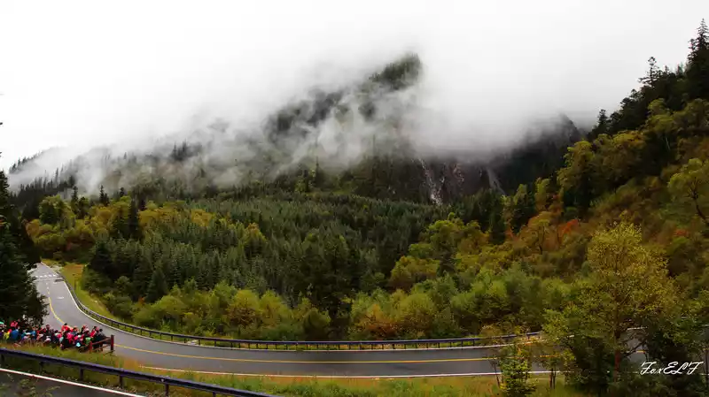 the side of the road leading to the colorful pool, the fog drifts in the mountains, so there is always a feeling of walking in the clouds.
