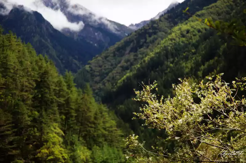 Jiuzhaigou is located in Zhangzha Town, Jiuzhaigou County, Aba Tibetan and Qiang Autonomous Prefecture, in the southern section of the Minshan Mountains in northwestern Sichuan Province, and is located on the northeast side of Gonggan Ridge in the southern section of Minshan. More than 400 kilometers away from Chengdu, it is a large tributary of the source of the Baishui River in the upper reaches of the Jialing River in the Yangtze River system. The terrain of Jiuzhaigou Nature Reserve is high in the south and low in the north, with deep valleys and great height differences. The northern edge of Jiuzhaigou is only 2,000 meters above sea level, the central peaks and ridges are more than 4,000 meters, the southern edge is more than 4,500 meters, and the main ditch is more than 30 kilometers long.