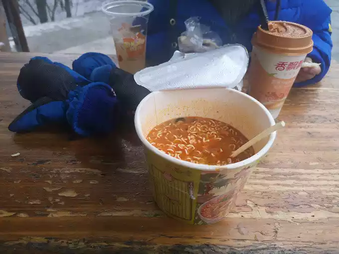 and the golden top does not have to be at the foot of the mountain at Baoguo Temple and Leidongping. The most common here is instant noodles, instant noodles of various flavors. In addition, there are steamed buns, grilled sausages, milk tea, etc.