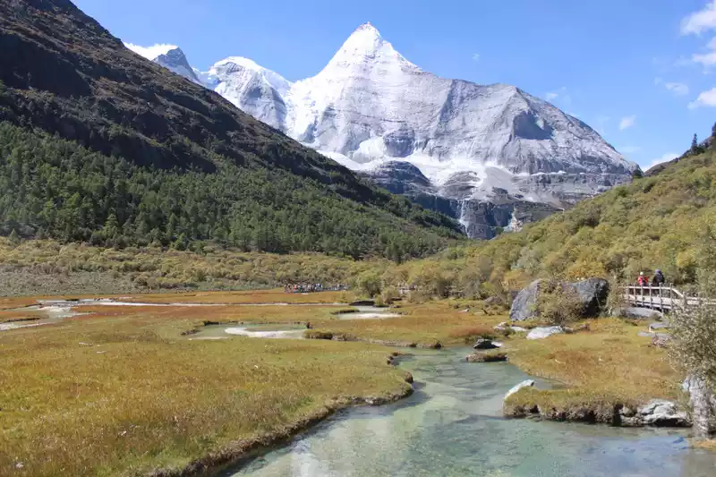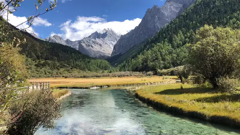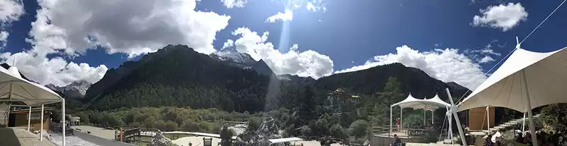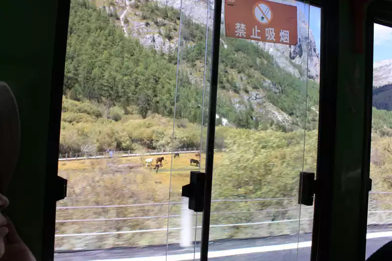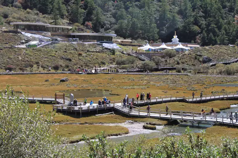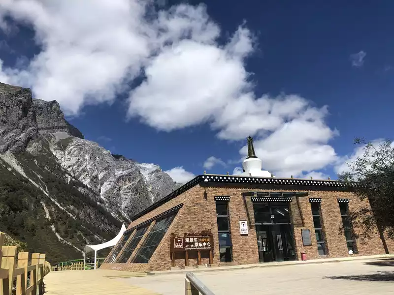 Be sure to take motion sickness medicine!! This section took about an hour, but the mountain road was very rugged, with many continuous turns, and many people in the car vomited on the first day. I took motion sickness medicine and slept all the time, and I was in good condition when I got out of the car, and my husband also took motion sickness medicine but it was still very uncomfortable. After getting off the bus, I started a short hike, and there were many people stopping and walking in this small section alone, but it hadn't really started yet. On the way, you can see the view of Okikoji Temple and snow-capped mountains in the distance. You can go to a large rest center to trim it, and there is a Chonggu meadow here.