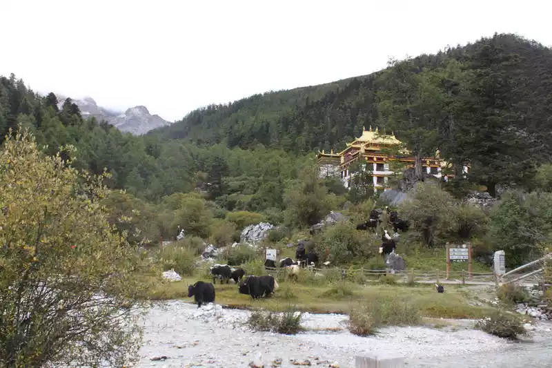 From Shangri-La, you need to make a bus to the gate of Aden Village Scenic Area, and if you see the bus waving on the main road, it will stop for you, get on the bus and confirm. Generally, the hotel will tell you to take a taxi. In fact, it is also possible, take a bus for 5 yuan, charter a car for 20, depending on the number of people you carpool for 10 yuan per person, and soon arrive at the scenic spot.