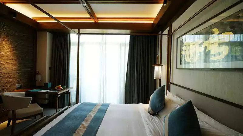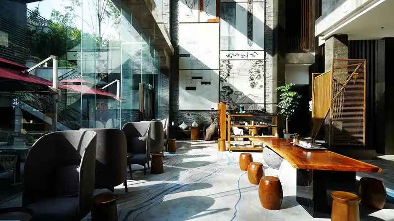 The hotel opened two years ago, is the first luxury resort hotel of Tianfu Mingyu Business Hotel in Chengdu, and it is also the only resort luxury hotel built on the mountain in Qingcheng Mountain, which is quiet, poetic and full of strong pastoral style. The origin of the name Shanzun comes from the Taoist thought advocated by Qingcheng Mountain, where the hotel is located, and Taoism has three statues: Yuanshi Tianzun, Lingbao Tianzun, and Moral Tianzun, so it is homophonic and is called "Shanzun". So there is today's Qingcheng Shanzun Hotel, which is like a paradise.