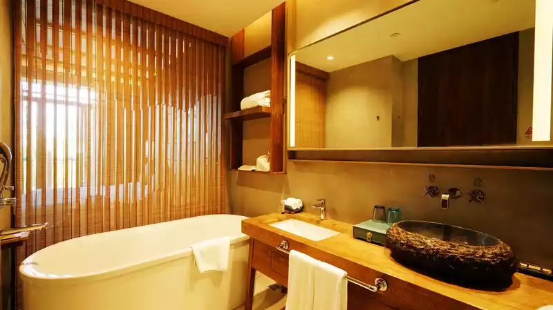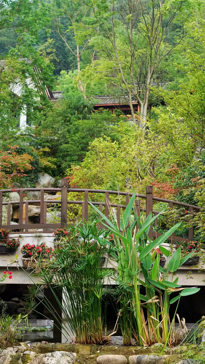 The hotel covers an area of about 90,000 square meters, with 231 rooms distributed among the green plants, and the gurgling stream flows through the rooms, giving it the feeling of a small bridge and flowing water.