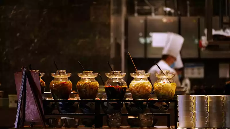 decoration style of Shanqu Chinese Restaurant is full of strong Chinese style, elegant and fashionable. The names of private rooms are named after local mountains and rivers. Chinese restaurants mainly serve Sichuan cuisine and Cantonese cuisine.