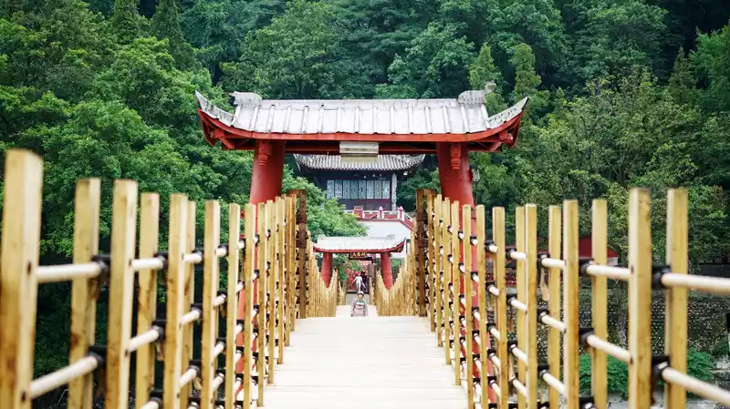 Anlan Suo Bridge, also known as "Anlan Bridge" and "Husband and Wife Bridge", is located on the fish mouth of Dujiangyan, spanning the inner and outer rivers, and is known as the "Five Bridges of Ancient China" and is the most characteristic landscape of Dujiangyan. It was built before the Song Dynasty and was destroyed in war at the end of the Ming Dynasty (17th century AD). The ancient name was "Zhupu Bridge", the first year of Song Chunhua was changed to "Judge Bridge", and the new bridge was renamed "Anlan Bridge" in the Qing Jiaqing Dynasty.The original cable bridge is supported by wooden stone piers, hung horizontally on the river surface with thick bamboo cables, covered with wooden planks as the bridge deck, and bamboo cables on both sides as railings, with a total length of about 500 meters, and the bridge is made of steel cable concrete piles.