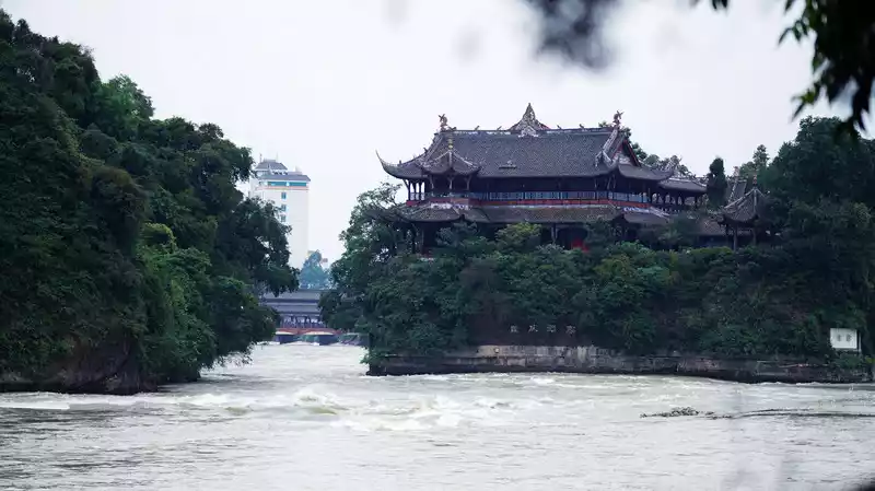 of the water diversion point of the Dujiangyan project is under the Fulong Temple, and legend has it that Li Bing and his son subdued the Minjiang evil dragon when controlling the water. Lock it in the Fulong Pond under the piles, and later generations built a shrine to worship it; At the beginning of the Northern Song Dynasty, it was renamed Fulong Temple, and Taoist priests began to be in charge of incense.