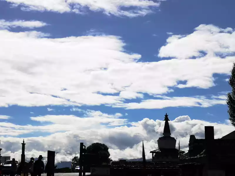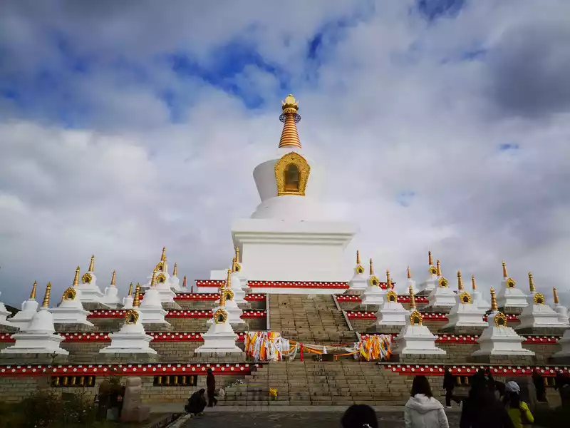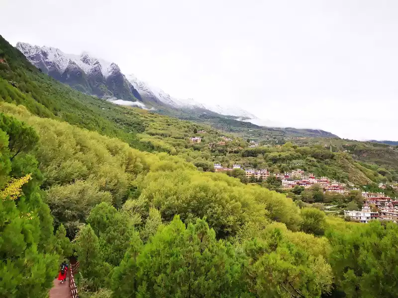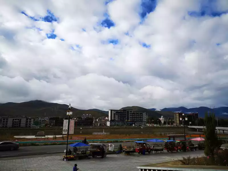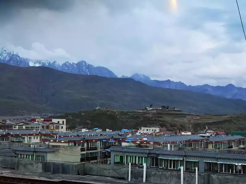 The architectural layout of the ancient city is like an eight-petal lotus, the center is Moonlight Square, and the quaint Tibetan-style wooden houses are surrounded one by one, where the local people live peacefully. On the west side of the square is the Great Turtle Mountain, also known as Turtle Mountain Park, and on the top of the Turtle Mountain, there is a world prayer wheel that has been recorded in the Guinness Book of World Records, and it takes three people to turn it together.