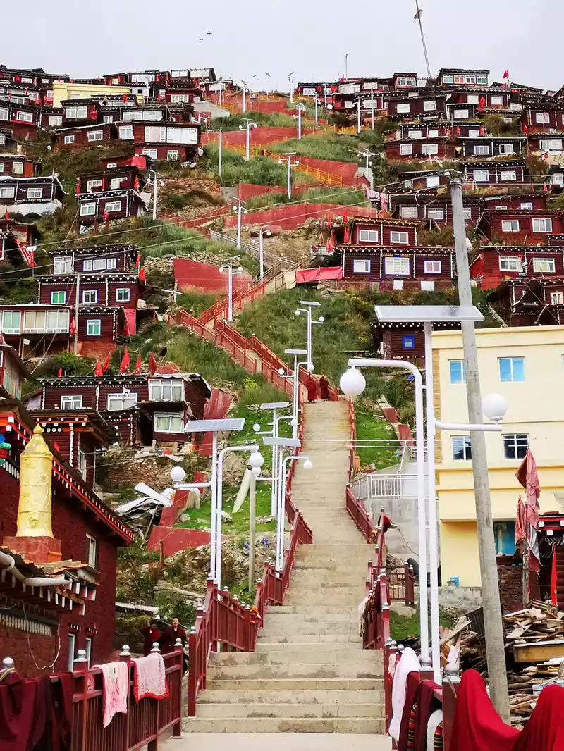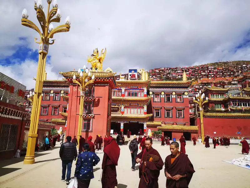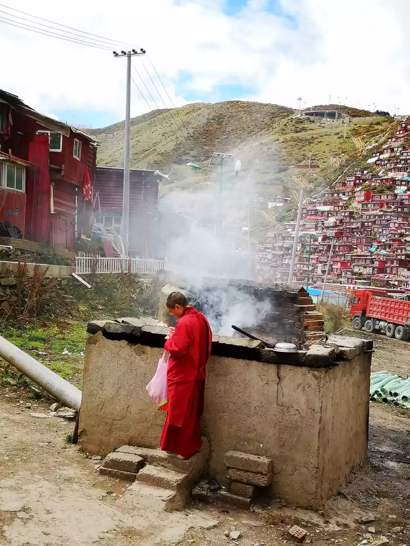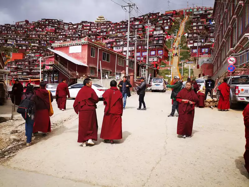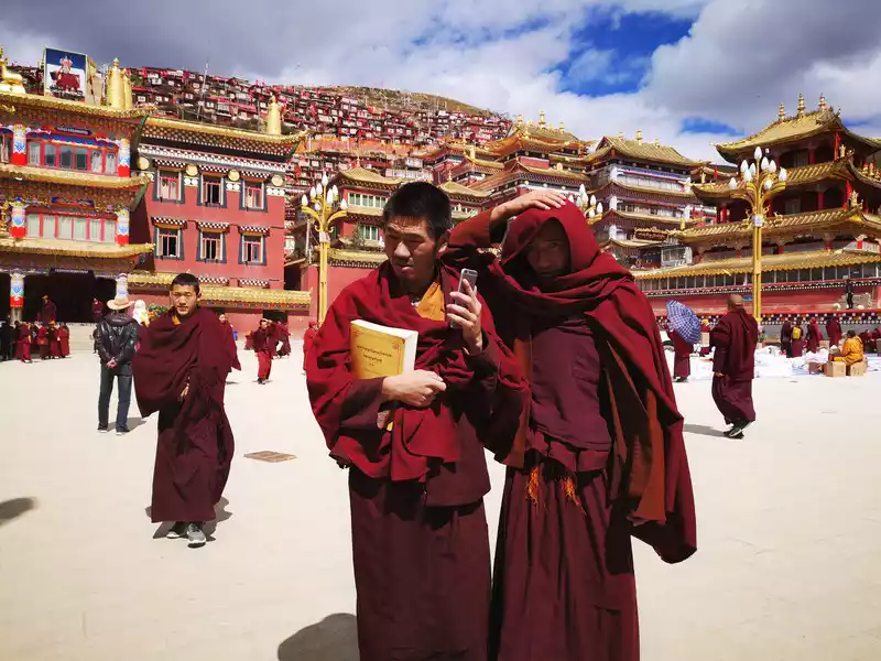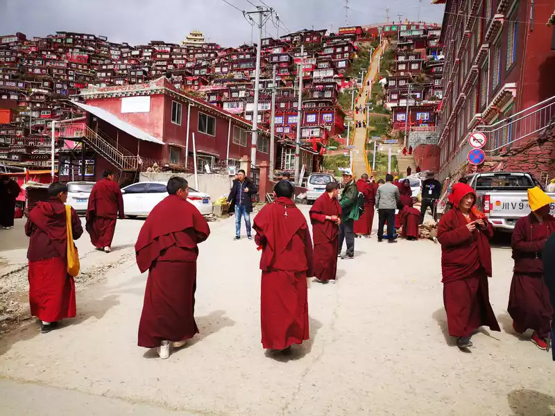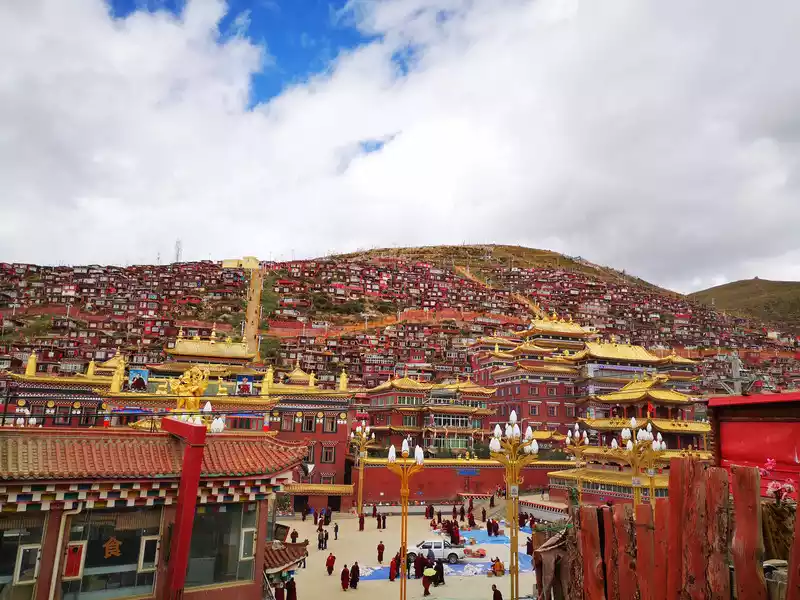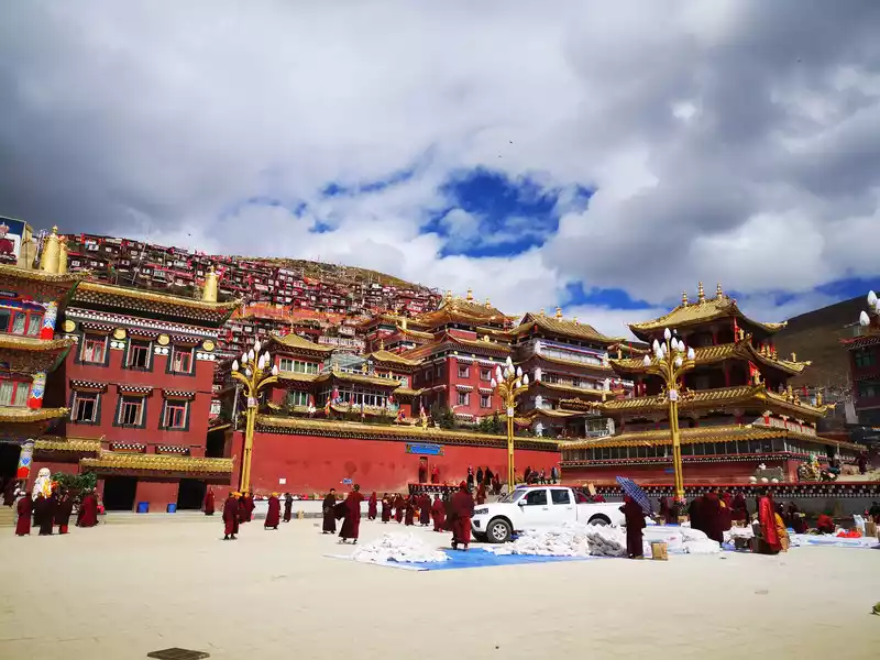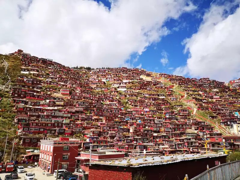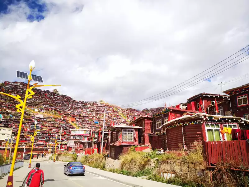 The entire Buddhist college is large in area and there are many paths, so you can explore it at will. On the hillside full of prayer flags in the southwest direction of the prayer tower, you can overlook the entire Buddhist college, and you can take a picture of the whole Buddhist college here.