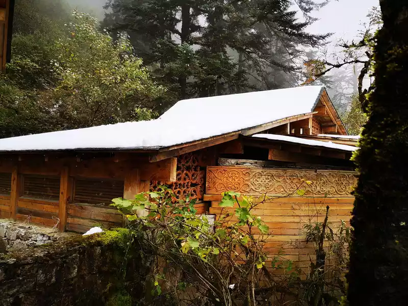 Just look at the snow on this roof to know how big it was the day before, it is rare for Kangding to snow so early, and this time we just caught up.