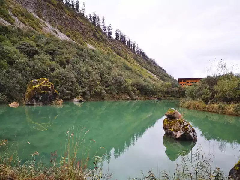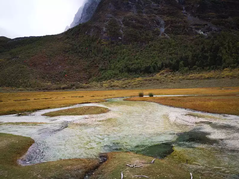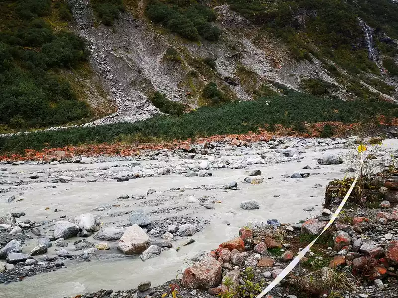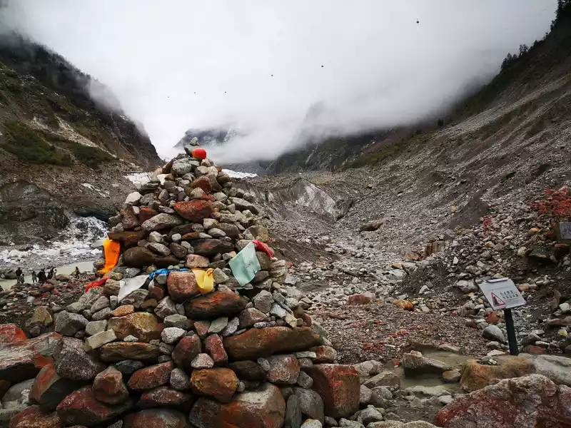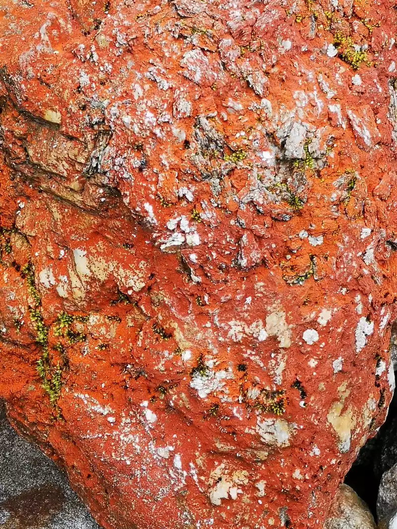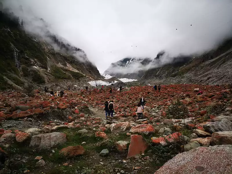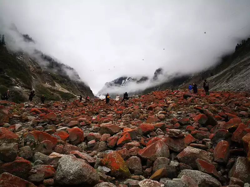 Due to the unique geographical and climatic reasons such as the unique humid and moist climate of Hailuogou and mineral elements such as manganese, which provides sufficient nutrients for the orange algae, the stones here are covered with red matter. This substance is a microorganism that reproduces in the unique ecological environment of the mountains, forming a peculiar landscape. According to research by the Chinese Academy of Sciences, the red substance on the stone, an aerial filamentous green algae --- Jolly orange algae, is bright blood red because the cells are rich in astaxanthin.