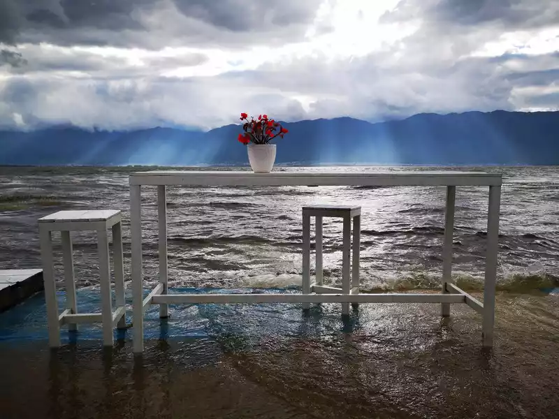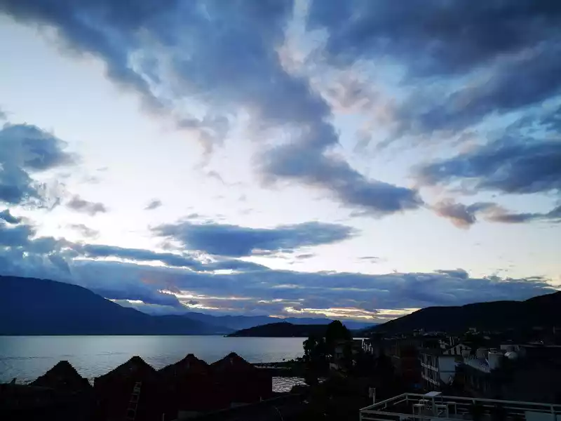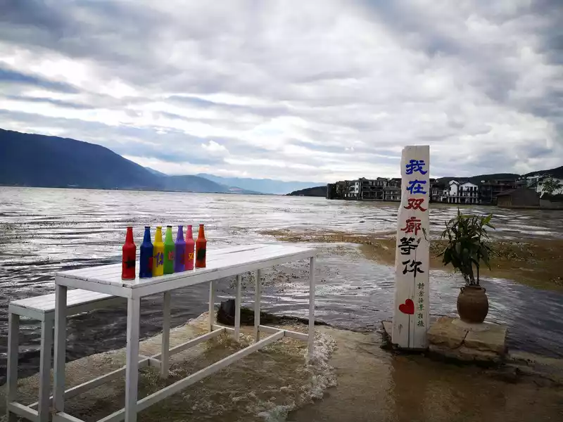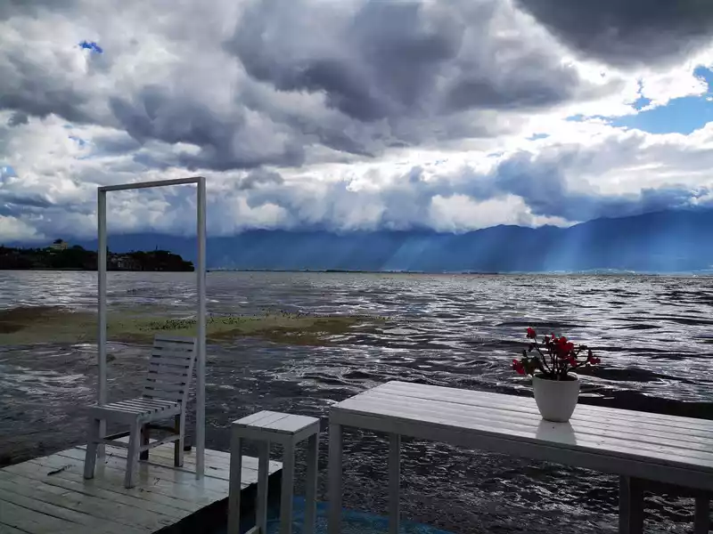 Shuanglang Town is located on the northeast bank of Erhai Lake, northeast of Dali City, close to the rippling Erhai Lake, and can overlook the nineteen peaks of Cangshan, integrating the essence of Cang'er scenery in one place. On a sunny day, the sun shines through the clouds and refracts on the lake, accompanied by the continuous Cangshan Mountains as the background, which is the shot that photographers want to capture the most. When we went, the weather was not very strong, the dark clouds were overwhelming, the sun appeared and disappeared, although we did not encounter the most beautiful scenery, but we also saw another side of Erhai Lake.