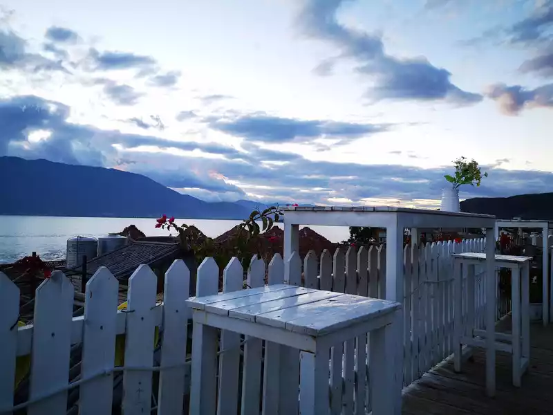 Xichang - Lugu Lake Daluoshui Village, 260 kilometers about 6.5 hours by car. We booked a lakeside viewing room, and we could see Lugu Lake from the balcony of the room, which was pleasing to the eye. The proprietress of the homestay is half a Wuhan native, her husband teaches at a university in Wuhan, and she opens an inn here, and the back door of the inn is a garden, and there is a path that can go directly to the lake.