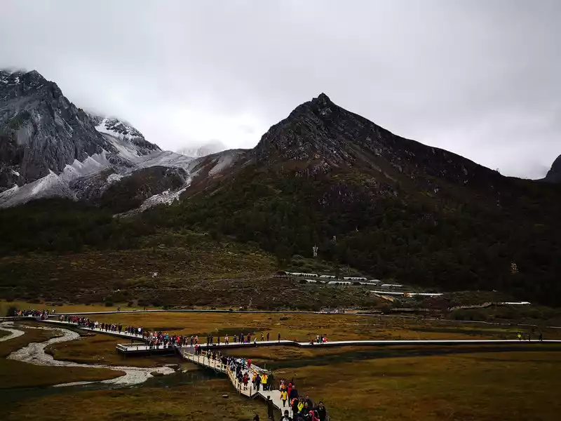 Our group was divided into three groups, a few people walked for a while because of physical strength or high reversal to rest and take pictures at the Luorong Cattle Farm, five people decided to impact the milk sea and the five-color sea, and the rest of me and a few other friends walked slowly, and if we could reach the milk sea and the five-color sea, we could not go up to the sea of milk and turn back, in addition to considering personal physical accidents, the most important thing is time, we must rush to the parking lot of the Aden scenic spot and take an environmental protection bus to the gate of the scenic spot, otherwise we can only camp on the mountain.Another friend and I walked here to see that we didn't have enough time and returned. Keep the milk sea and the five-colored sea for next time.