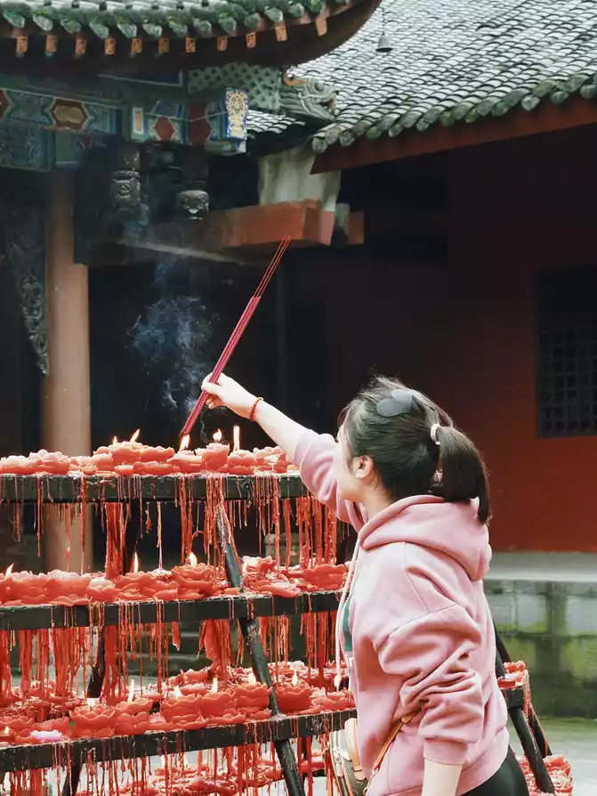 The first stop we went to Longquan Mountain Shijing Temple, hidden in the mountains and forests, there is Zen in every inch, the chic of this thousand-year-old temple is not inferior to other places, In the scenery of red walls and green trees, the eaves of buildings are exposed, and the lit red candles dance with the wind, just like the boundary of Chengdu, which is as comfortable and comfortable as the border of Chengdu, with a little red and spicy.