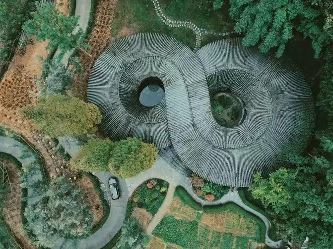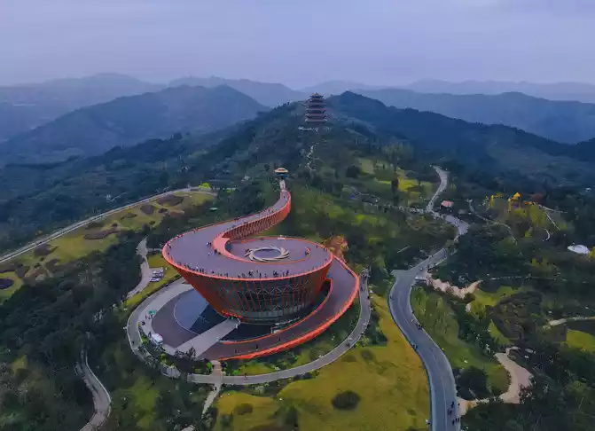 The next day we first went to Daoming Zhuli, a small village around Chengdu, famous for its characteristic architecture, Its unique shape can be seen from a high altitude, so some bamboo art activities and farmhouse meals that continue to develop in the village are very popular.