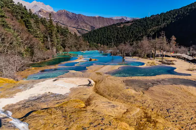 Huanglong Scenic Area is to take the cable car to Wanglong Terrace first, and then walk to the tour. If you have good physical strength, go to the colorful pond at the highest point, but this requires an additional 3 highways. But I personally feel that it is still necessary to experience the colorful pool.