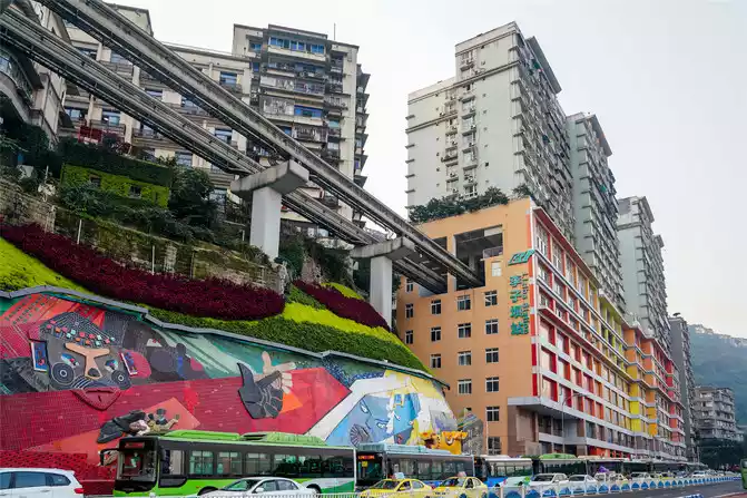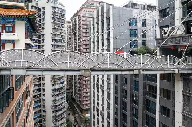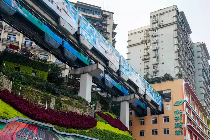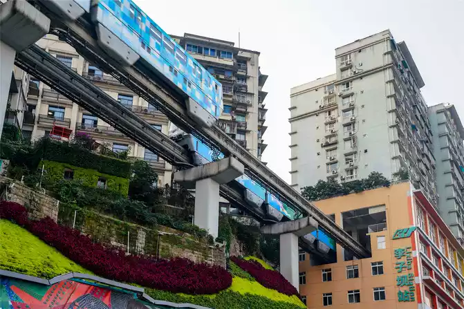 [Chongqing Monorail Line 2 Liziba Station] is China's first rail transit (straddle monorail system) elevated station that coexists with commercial and residential buildings, completed in March 2004, covering an area of 3,100 square meters and a construction area of 6,000 square meters. The station is located on the 6th to 7th floors of the commercial and residential building at No. 39 Liziba Main Street on the south bank of the Jialing River, and has become a well-known "Internet celebrity station" at home and abroad because of its "monorail passing through the building". Take Line 2 to the Jiangmen-Fotuguan area, and there are large glass windows at the front or rear of the car for tourists to take videos, like a city roller coaster.The output index of the video shot here: ★★★★★