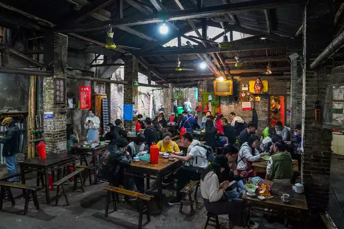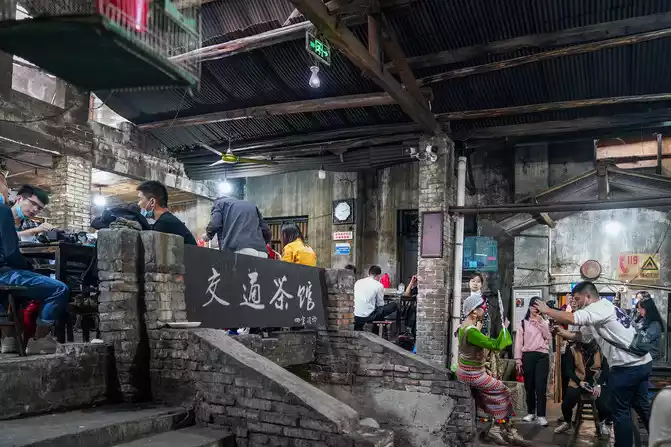 [Traffic Teahouse] A 5-minute walk from the east gate of the Huangjueping Campus in Chuanmei, a 5-minute walk from the east gate of the Huangjueping Campus in Chuanmei, a filming location for the movie "Crazy Stone" and the variety show "Extreme Challenge", an old store with a strong market atmosphere.The very low-key entrance, walking through a short aisle, a slightly dilapidated wooden beam structure house comes into view, as well as those wooden stools, mottled wooden square tables, gaiwan tea and old tea guests, it seems to have the illusion of traveling through time and space. Photo output index: ★★★★