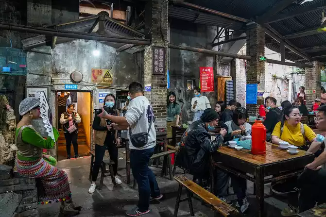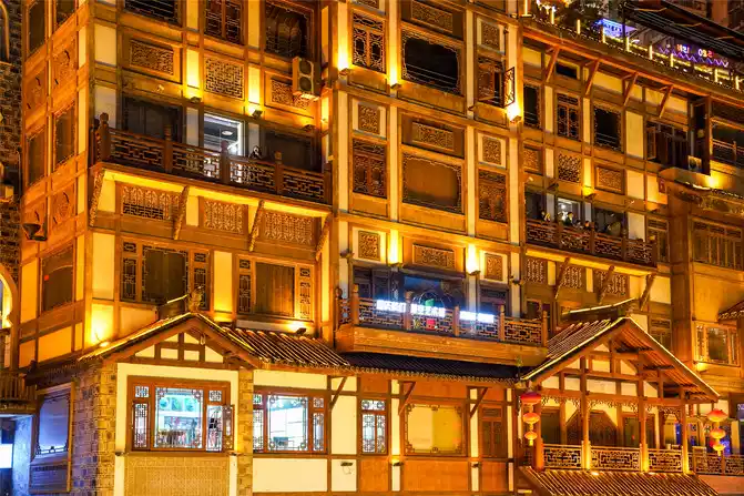 【Hongya Cave "Reunion 1980" Block】With the style of "stilt building" with the characteristics of Bayu traditional architecture as the main body, through layered platform construction, stilts, staggered stacking, cliff and other mountain architectural techniques, the six major formats of catering, entertainment, leisure, health care, hotels and characteristic cultural shopping are organically integrated, forming a unique "three-dimensional air pedestrian street", becoming an urban scenic spot and commercial center with layers and textures.The "Reunion 1980" block is rebuilt with the theme of Chongqing city life in the eighties and nineties of the 20th century, with a total construction area of about 3,100 square meters, and artistically displays the era life scene area, the era character interpretation area and the era interactive experience area. Photo output index: ★★★★