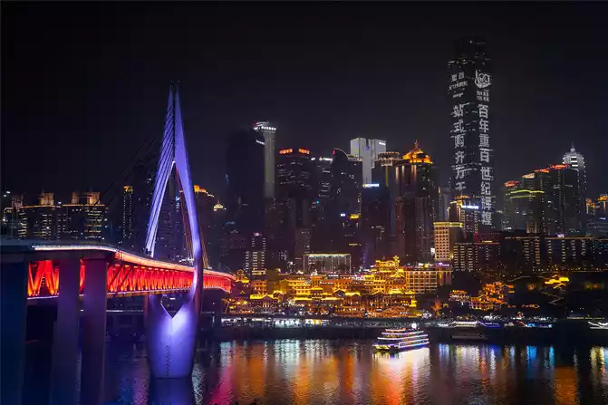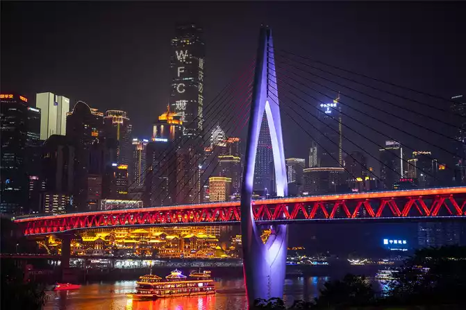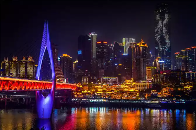 [Qiansimen Bridge Night Shooting] Shooting Hongya Cave, standing on the Qiansimen Bridge is an excellent position.Take the light rail to the "Grand Theater Station" at the other end of the Qiansimen Bridge, get off the bus and walk to the bridge, go to the bridge and walk to the top of Hongya Cave to shoot. Photo output index: ★★★★★