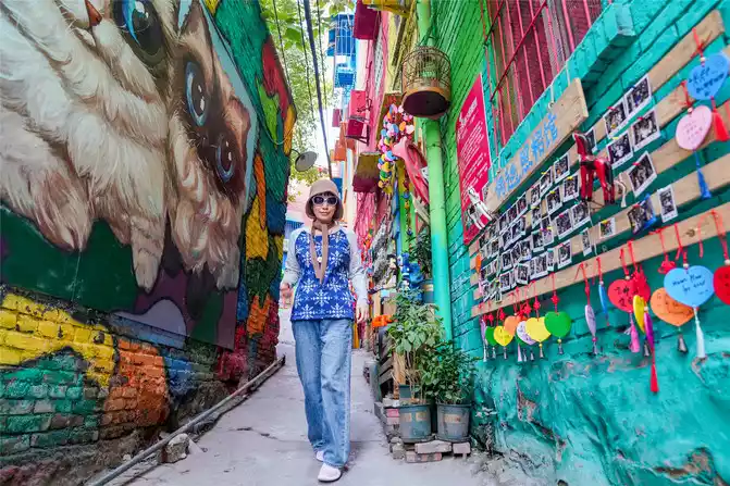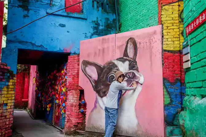 【Stables Bay Colorful Alley】A new landmark for Internet celebrities to check in. Colorful Alley is made of graffiti from several rows of old houses, red, green, blue, yellow, and various colors collide with each other, adding a lot of fun to this alley. Look, on the goose yellow wall, there is a cute big-eyed cat lying on its stomach, and it seems to have broken through the white wallpaper and poked its head out to look; And the French bulldog, which is in the most conspicuous position at the corner of the alley, is looking up at the young lady who came to take a group photo, and it is its cute appearance that has attracted the attention of many tourists; On the purple wall here, there is also a gluttonous Shar Pei, who saw the food in the spoon, and his saliva had dripped for a long time. These bold and bright colors, bright and fresh atmosphere, walking in it, as if breaking into the world of rainbows, attracting attention at the same time, as if the soul is also refreshed.Address: Next to Jianghu Cuisine, No. 66, Mafang Bay, Shapingba District Photo output index: ★★★★