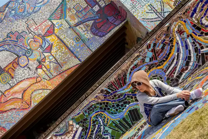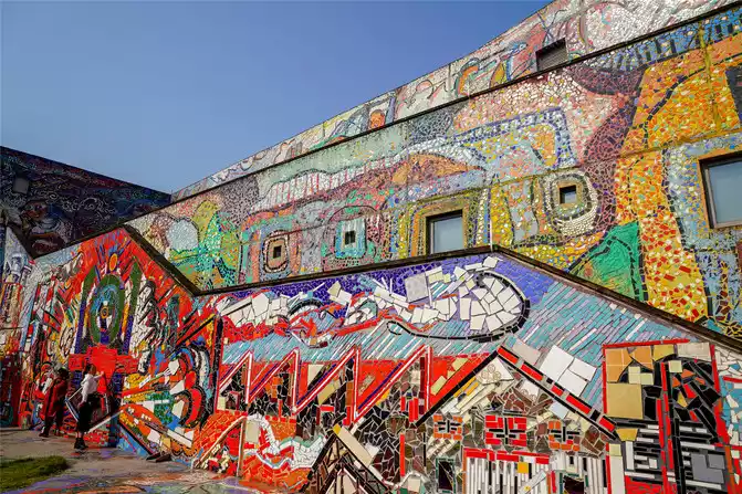 The facades of all buildings are made of countless colored broken tiles piece by piece, not oil paint, which are all discarded tiles purchased by Sichuan Mei in various factories. The exterior walls are covered with bright, jumping, and flexible colors and patterns, including animals, plants, figures, and architecture, both realistic and abstract. A circle of ups and downs on the exterior wall, this shocking feeling can only be experienced on the spot, and you may not be able to find a second one in the world in an art museum covered with colorful patterns like this. The exterior walls of the museum are also a huge work of art.Address: Sichuan Mei Shapingba Campus Photo output index: ★★★★★