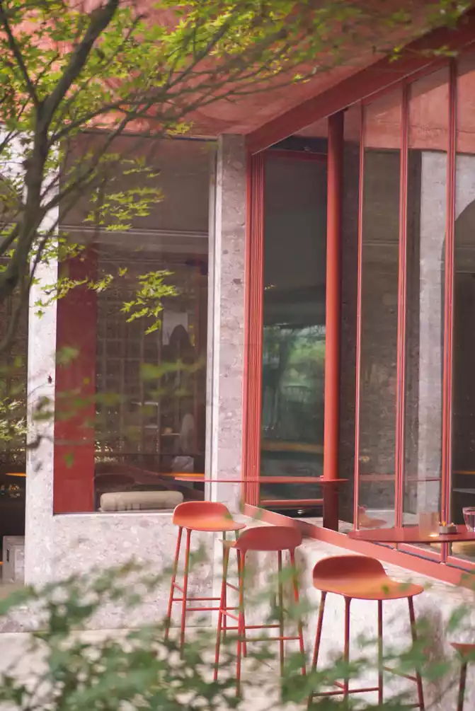 most eye-catching thing on the street is this Kaminarimon hot pot, which combines coffee, hot pot, bar, and gallery. The brick red geometric design is particularly suitable for taking pictures, I walked around the side, and I couldn't believe that this was a hot pot restaurant!?