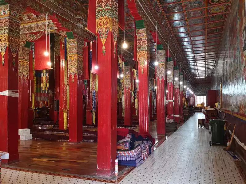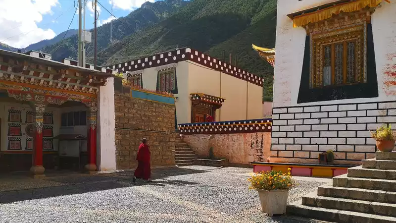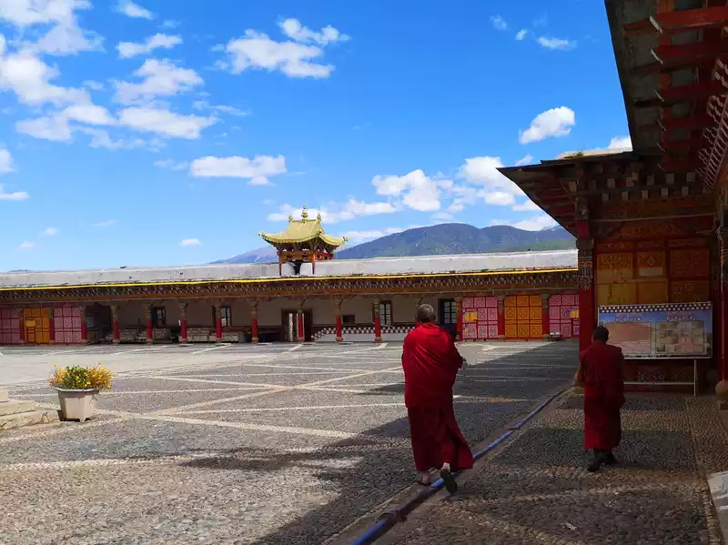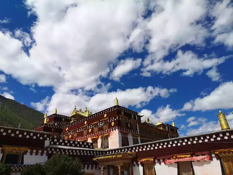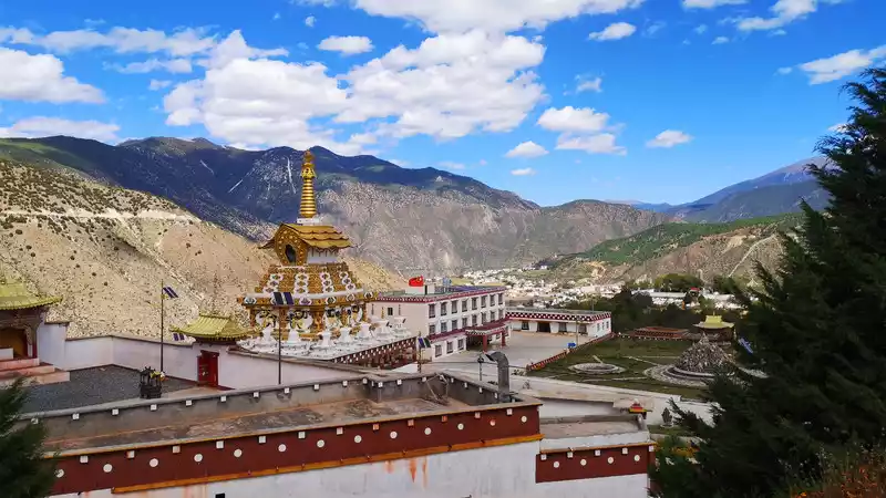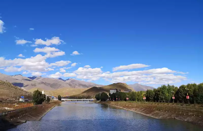 In the township "Sangpoling Temple": Sampiling Temple, also known as Jiarong Temple, covers an area of 10,000 square meters, was built in 1654 and is one of the famous Kadan temples in Tibet.