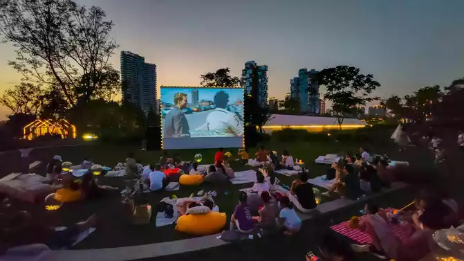 It turns out that there are also small islands in Chengdu, watching an open-air movie by the lake