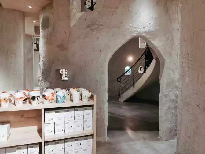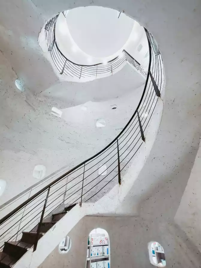 As soon as you enter the door, not far from the left side is the most distinctive spiral staircase of this store.