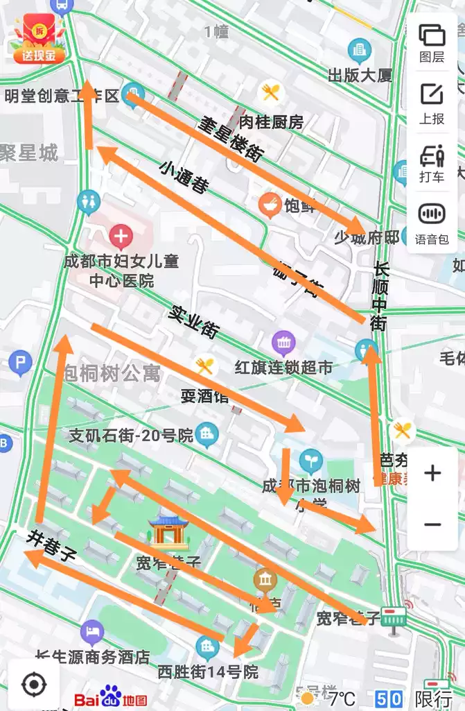 route attached: Kuan Xiangzi East Square - Wide Alley - Narrow Alley - Narrow Path - Jing Alley - Zhiji Stone Street - Zhazi Street, Xiaotong Lane - Kuixinglou Street