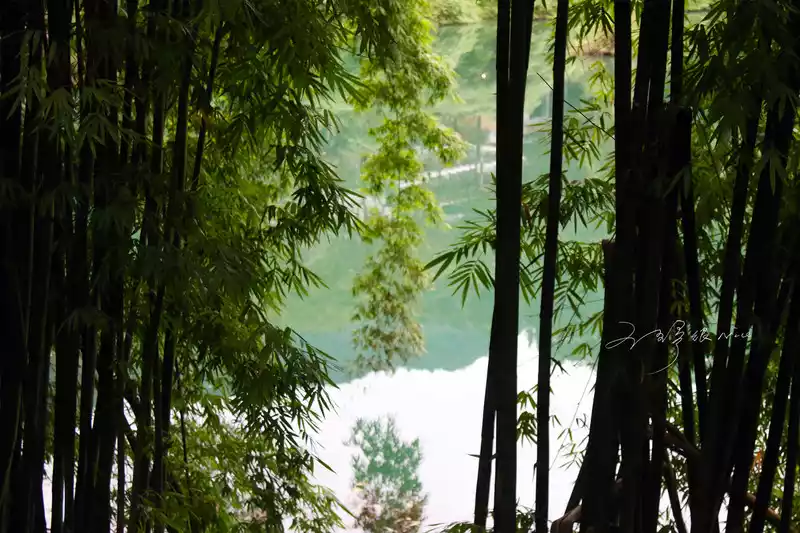 In fact, from different angles, you can feel different charms, swimming a lot of bamboo around the lake, if for friends who come to the south for the first time, seeing fresh bamboo is undoubtedly not a very exciting thing, through the bamboo forest can also see the turquoise lake, reflecting the green mountains in the distance, I think there is no one who doesn't want to take a beautiful photo here!