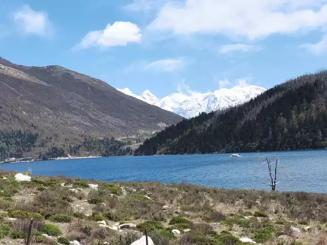 There is a wooden bridge leading to a private courtyard on the "Emerald Lake", the wooden bridge is built with rope traction, and there is a cement bridge base in the middle, and people who can build a bridge for themselves here and can live here must enjoy it very much, perhaps this feeling we have never experienced. However, there are many homestays around the lake, which are also very meaningful, and you can take a look if you have the opportunity to come here.