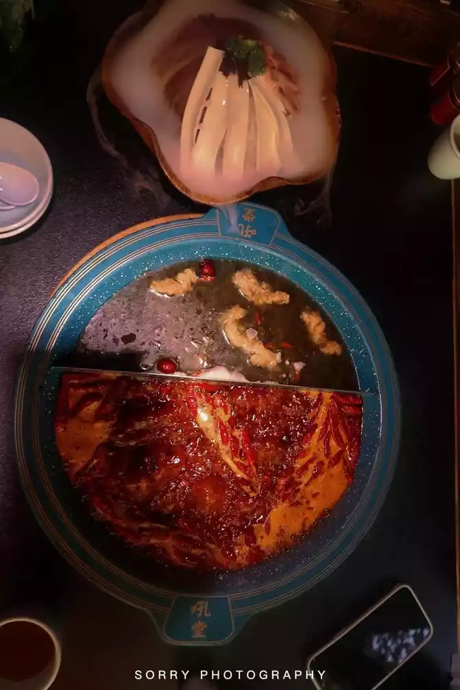 Come to Houtang to eat hot pot, how can you miss the unique and creative mandarin duck pot base (old Chengdu spicy pot base + sauerkraut crispy meat tofu pudding pot base), accustomed to eating spicy pot, Houtang's sauerkraut crispy meat tofu pudding pot base is absolutely unique, which makes your eyes shine!