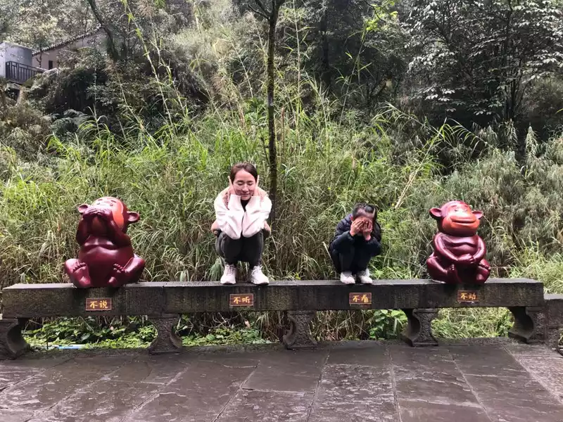After breakfast, we checked out at half past 10 and set off for the Emei Mountain Ecological Monkey Area. 7 kilometers round trip, up and down, little peach walks by itself. The monkey doesn't feel worth the price, it's just a circle of a place, looking at the monkeys, and there are no monkeys coming to the road, but they can't hold back the little peach happy. But the scenery of Mount Emei is really beautiful, and my mother also took a lot of photos.