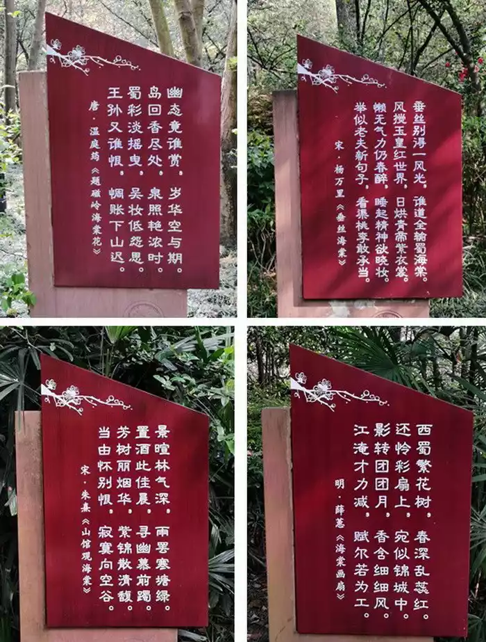 The famous general and prime minister of the Tang Dynasty, Guo Zhen (character Yuanzhen), once wrote a poem for Haitang: "It is glorious with the peach and plum for a while, and it does not grow everywhere in the east wind." I doubt that the four directions of the day are not planted, and the teaching is unique in Shu." Some people have researched why begonia flowers are famous in Shu? Because Guo Zhen said that begonia is a flower in the mountains and fields in Sichuan, the flowers are beautiful, but the flowering period is short, and the practical value of the fruit is not high, so it is difficult to promote. After the Tang Dynasty, large-scale planting mainly focused on the practicality and strong ornamental nature of begonia trees. However, due to the difficulty of management and other reasons, it is suspected that other places dislike not planting, only Sichuan is lush, so Sichuan begonia is famous. Now the begonia flowers in the begonia park in Shuangliu, Sichuan Province are in full bloom, and people prefer to enjoy the begonia flowers in the garden, and the spring color of the garden is the most famous.